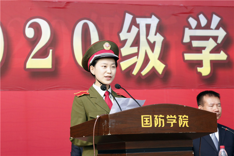 2020级新生代表制药3201班王媛同学作表态发言。表明将会在新的大学生活中继续发扬军训中学到的优良作风。