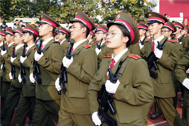 风和日丽,秋高气爽。10月25日上午,我校2020级新生军训成果汇报大会在北校区田径运动场举行。2020级全体新生用昂扬的热情、高昂的斗志、英姿飒爽,迎来成果检验。学校党委书记张卫平,校长刘敏涵,党委副书记、纪委书记王明哲,党委副书记杨聪,副校长、全卫强、张永军、孟繁增,军训团团长韩文涛出席大会,学校相关单位负责人、全体军训教官和2020级新生参加汇报大会。