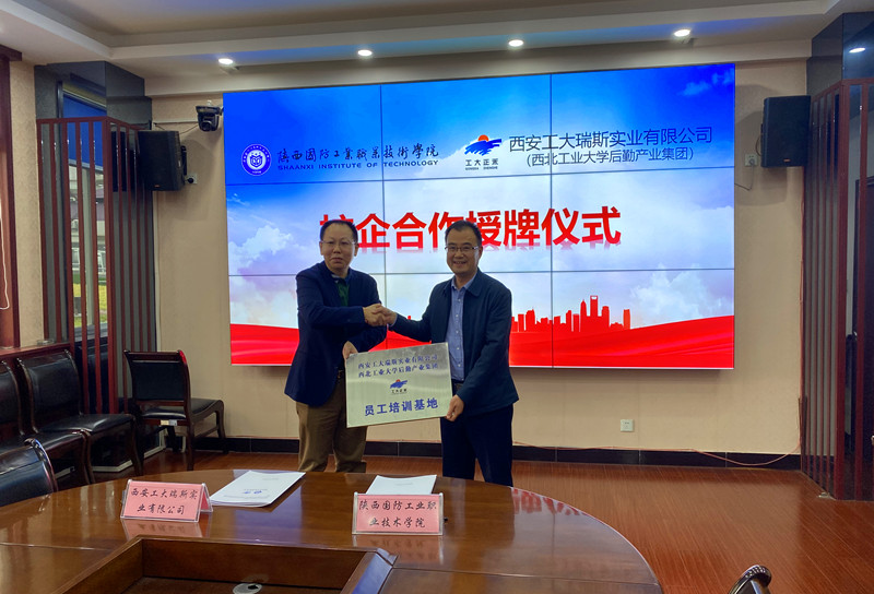 签约授牌活动前,双方观看了我校和对方企业的宣传片,加深相互了解。张永军副校长对韩志兵董事长一行的到来表示热烈欢迎,并从学校办学历史、办学理念、办学特点、发展现状、校企合作模式和“双高”建设等方面做了详细介绍,并提出互相借鉴发展经验,各自所需、真诚合作、共同发展、互利共赢。接着,西安工大瑞斯实业有限公司董事长韩志兵提到双方合作要紧紧围绕双方学校“双一流”建设等中心工作,以“三服务、三育人”为宗旨,以学生为根、以育人为本、以学者为要、以学术为魂、以责任为重,共同为双方发展做出贡献。