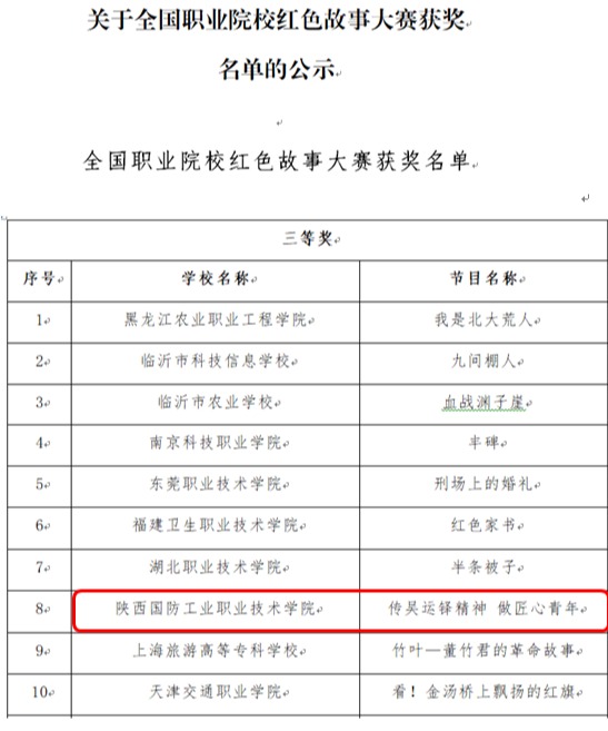 此次参加红色故事比赛荣获全国三等奖,展示了我校弘扬红色军工文化、传承红色基因的良好精神风貌。今后,我校将继续弘扬红色文化,吸引、带动更多人了解红色军工历史,用坚定的信仰引领人、用生动的形式吸引人,进一步激发了学校思政育人活力。