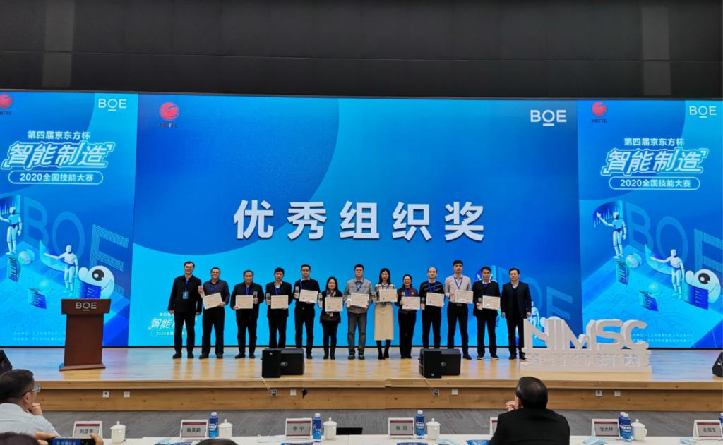 近日,第四届(2020)“京东方杯”智能制造技能大赛颁奖典礼在北京举行,我校获优秀组织单位、优秀指导教师5名、二等奖1项和三等奖3项等荣誉,该赛项由工业和信息化部人才交流中心主办,京东方科技集团股份有限公司(BOE)冠名承办。我校智能制造学院副书记兼副院长沈博、教学科长王新海等参加了颁奖典礼。