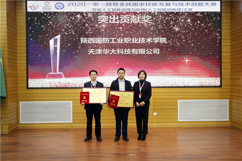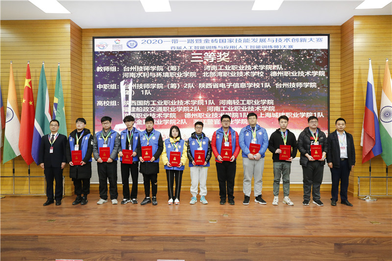 金砖国家技能发展与技术创新大赛组委会执委会副主席、北京企学研教育科技研究院执行院长何勇为获奖选手颁奖