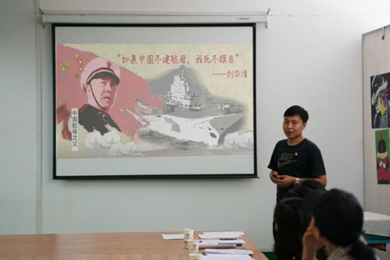 艺术与设计学院教师张志越汇报“红色军工”文化长廊设计相关情况