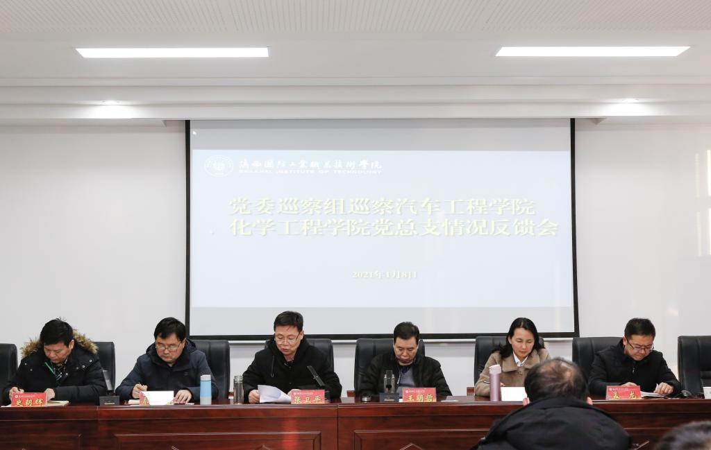 根据学校党委巡察工作领导小组的部署,2021年1月8日,党委巡察组向汽车工程学院、化学工程学院党总支反馈巡察情况,反馈会议在招就处宣讲厅举行。党委书记、巡察工作领导小组组长张卫平出席会议并讲话。党委第一巡察组组长殷兴光、第二巡察组组长沈惠分别向汽车工程学院、化学工程学院党总支反馈了巡察情况。党委副书记、纪委书记王明哲主持会议。