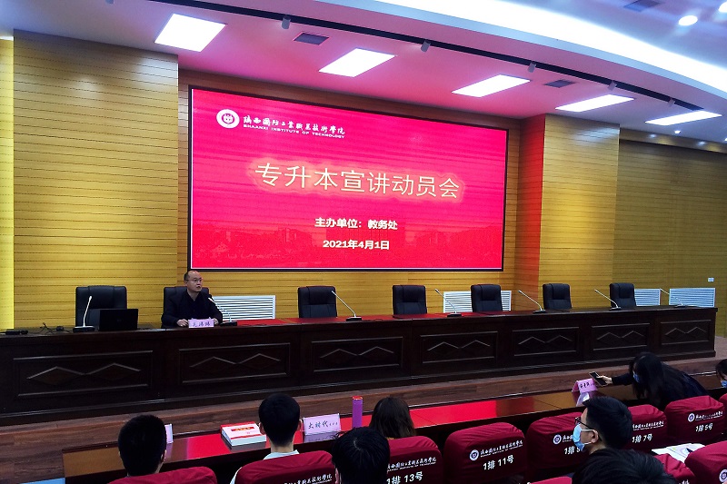 近年来我校统招专升本报考人数连年增长,学生通过率不断提高。为进一步做好在校生专升本培训工作,切实提高我校学生升本率,教务处于2021年4月1日下午在教四报告厅组织召开 “专升本宣讲动员会”。教务处副处长吴玮玮出席并主持会议,教务处相关负责老师及各分院400余名学生到场参加。