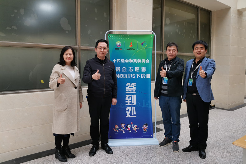 4月10日至11日,我校团委按照第十四届全国运动会、第十一届残运会暨第八届特奥会组委会相关要求,组织170余名志愿者在教四报告厅参与了十四运会和残特奥会2021年赛会志愿者通用知识培训活动。培训期间,组委会督导专员赵文峰、苏向阳莅临现场,对培训场地布置、授课方式和授课内容等进行了现场督导,保证本次培训正常顺利开展。