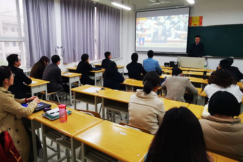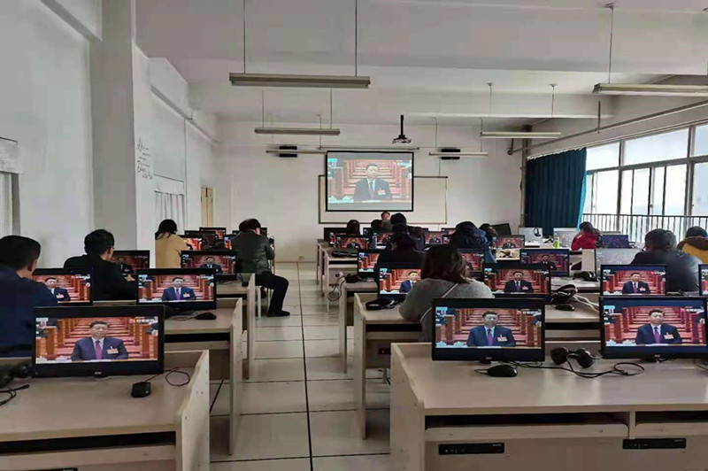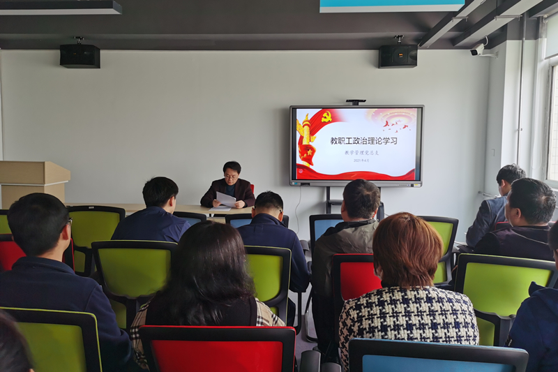 【党政机关党总支】4月13日下午,党政机关党总支组织全体教职工召开政治理论学习会,会议由党政机关党总支书记殷兴光主持。会议分两个专题进行。第一阶段是党史学习教育专题,全体教职工集中学习了文章《用正确历史观看百年党史》,在中国共产党百年华诞这样一个重要历史节点,深入学习贯彻习近平总书记关于牢固树立正确历史观的一系列重要论述,对于我们深刻把握中国共产党砥砺奋进的光辉历程、辉煌业绩和宝贵经验,奋力实现中华民族伟大复兴中国梦,具有极为重大的意义。第二阶段是政治理论学习专题,会上,大家集中学习了习近平总书记在《求是》杂志上发表的重要文章《在党史学习教育动员大会上的讲话》,集中观看学习了2021年全国“两会”精神系列视频。殷兴光同志强调,开展党史学习教育意义重大,要求全体教职工在学习党史过程中要突出重点、务求实效,要立足实际、知行合一,把党史学习教育与行政教学工作紧密结合起来,以优异的成绩迎接建党100周年。
