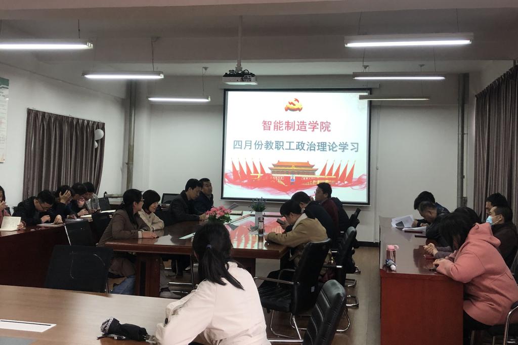【智能制造学院党总支】按照陕国职党宣〔2021〕9号文件《关于2021年4月份教职工政治理论学习安排的通知》要求,为进一步提高教职工政治理论水平,智能制造学院党总支于2021年4月13日下午在教10-305召开了本月教职工政治理论学习会议,会议由总支书记白福民主持,分院全体教职工参加会议。白福民带领全体教职工共同学习了2021年全国“两会”精神和教育部长陈宝生关于《扎实推进党史学习教育,干实事、解难事、谋大事、创新事、长本事》的讲话,并共同观看习近平总书记《在党史学习教育动员大会上的讲话》和《努力成为世界主要科学中心和创新高地》等系列视频。全体党员同志学习了《中国共产党党员权利保障条例》文件和《论中国共产党历史》部分内容。会议要求要通过学习,明理、增信、崇德、力行,坚守立德树人初心,将贯彻落实全国两会精神、习近平总书记重要讲话精神和分院各项重点工作结合起来,切实增强个人学习教育的思想自觉和行动自觉,把学习教育成效转化为推动学校高质量发展的强大精神动力,谱写学校发展新篇。