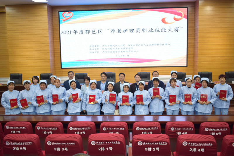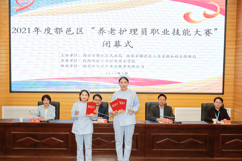 经过紧张激烈的比赛,最终评选出一等奖2名,二等奖4名,三等奖5名,优胜奖7名,其中来自于西安滨河荣华养老服务有限公司的罗茹和杨雷两位选手被授予西安市鄠邑区“技术能手”荣誉称号。