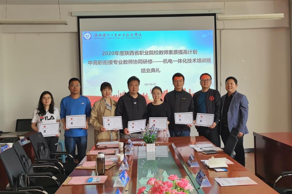 近日,2020年度陕西省职业院校教师素质提高计划(国培项目)中高职衔接专业教师协同研修——机电一体化技术培训班结业典礼在我校举行,来自全省18所高职院校的学员参加了会议,会议由智能制造学院教学科长王新海主持。