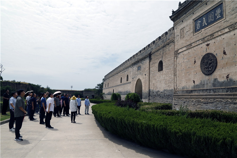 驱车到达朝邑镇,在丰图义仓城门前,门额书写的“以资捍卫”几个大字,就使大家感受着历经百年沧桑变化而巍峨屹立的庄严感。沿着参观顺序,大家从夯土所筑的外城走入仓墙合一的内城,依次参观了阎敬铭纪念馆、廉政书画展馆、粮食历史展馆等主要场馆,深入了解了丰图义仓被御封为“天下第一仓”,至今仍然为国家储备粮库的原因,感受到丰图义仓在“丰年储粮,荒年赈灾,储粮备荒,防患于未然”所起到的重要作用。登至墙顶,巧妙的排水系统使众人纷纷感叹古人的智慧,也深深地感受到朝邑当地百姓为节约粮食、储存粮食所做出的巨大努力,激发了大家响应国家号召,节约粮食、制止餐饮浪费的热情,也展现了中华民族与自然抗争的忧患意识和高超的建筑技能。