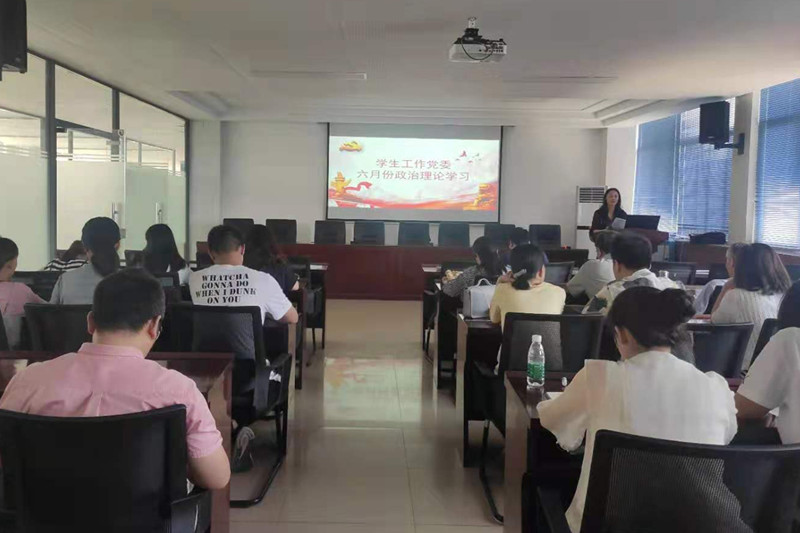 【经济管理学院党总支】6月3日下午,经济管理学院党总支在5-604开展6月份教职工政治理论学习。全体教职工参加了本次学习,会议由党总支书记王文雅主持。会上,王文雅领读《习近平总书记在广西考察期间重要讲话精神》、王珊珊领读《习近平在会见第一届全国文明家庭代表时的讲话》、李志春领读《习近平总书记教育重要论述讲义》——第五讲“教育发展要走自己的路”,最后大家集中观看视频《习近平总书记在清华大学考察时的重要讲话精神》、微纪录片《百炼成钢:中国共产党的100年》。王文雅要求大家要深刻领会习近平总书记考察时重要讲话精神的内涵和重大意义,凝心聚力,铆足干劲,发挥表率作用,扎实推进学院的各项工作。要持续深化“学党史、强信念、跟党走”学习教育,切实做到学党史、感党恩、促发展、见行动。