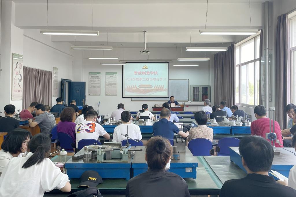 【智能制造学院党总支】2021年6月1日,智能制造学院在10-203举行6月份政治理论学习活动暨全体教职工大会,学院党政领导以及全体教职工参加了会议。会议由智能制造学院党总支书记白福民主持。会上,白福民同志宣读了《关于2021年6月份教职工政治理论学习安排的通知》(陕国职党宣〔2021〕13号),领学了《习近平总书记在广西考察期间重要讲话精神》《习近平总书记在清华大学考察时的重要讲话精神》《习近平关于注重家庭家教家风建设论述摘编》节选内容、《习近平总书记教育重要论述讲义》第五讲“教育发 展要走自己的路”相关内容,全体教职工集体观看了微纪录片《百炼成钢:中国共产党的 100 年》选集视频 。随后,白福民同志总结讲话,他指出,全体教职工要将理论学习与工作实践有机结合,严格要求自己,不忘初心,勠力奋斗,助力个人提升和专业发展,助力学校各项工作更上一层楼。政治理论学习活动结束后,沈博同志带领全体教职工学习了《betway必威中文正版科技成果转移转化奖励和收益分配办法》《betway必威中文正版社会培训项目管理办法(试行)》《betway必威中文正版横向科研项目及经费管理办法》文件精神,通报了教学中期检查结果和反馈出的问题,要求全体教师要善于运用信息化手段,加强课堂监管,规范教学流程,提升课堂教学效果,要求全体辅导员要强化责任意识,发挥党员先锋模范作用,做好组织策划、做好学生管理与引导,促进学生良性发展。随后,张晨亮同志通报了机电一体化技术专业群近期建设项目开展情况,肯定了2021年以来学院教师在国家级课程思政项目、国家级教师教学创新团队、国家级技能等级认证标准与题库开发、省级技能大师工作室、技能大赛、“1+X”项目申报、双语教材开发等方面取得的丰硕成果,要求大家齐心协力,再创辉煌。最后,李俊涛同志做总结发言和重点工作强调,他指出,全体教师要注意时间节点,加快课程开发、实训室建设、专业群人才培养方案开发等工作推进进度,加强横向课题研究、社会培训、科技成果转化等工作完成质量;他强调,智能制造学院在各方面工作顺利有序运行的同时,也取得的丰硕的成果,离不开全体教职工的团结协作、无私奉献,希望所有教职工携手同心、再接再厉、再创新高,共同创造专业群美好未来,共同为学校发展添砖加瓦。