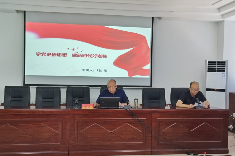 刘少阳同志分别从“从历次党代会的召开学党史”“从革命精神的传承悟思想”和“践行三牛精神 为学校高质量发展开新局谱新篇”三个方面对“学党史悟思想做新时代好老师”做了深刻讲解。