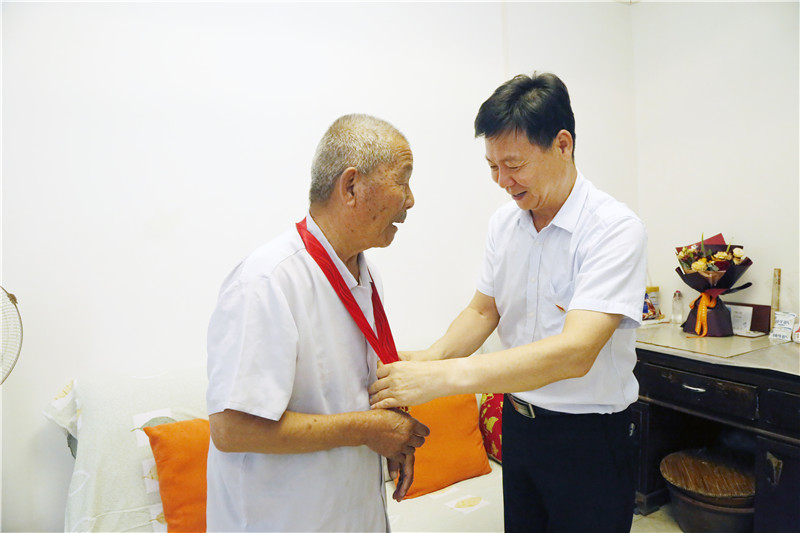 在“抗美援朝纪念章”获得者上官定禄、杨兆富两位老党员、老战士家中,张卫平书记详细询问了两位老同志的身体和生活情况,衷心感谢老同志们为新中国建设和学校建设发展奠定的坚实基础,并亲自为他们佩戴“光荣在党50年”纪念章、送上慰问金。张卫平表示,老党员是学校的宝贵财富,也是广大师生学习的榜样,希望各位老党员在保重身体、生活愉快的同时,一如既往地关心和支持学校发展,多为学校发展提出宝贵意见。
