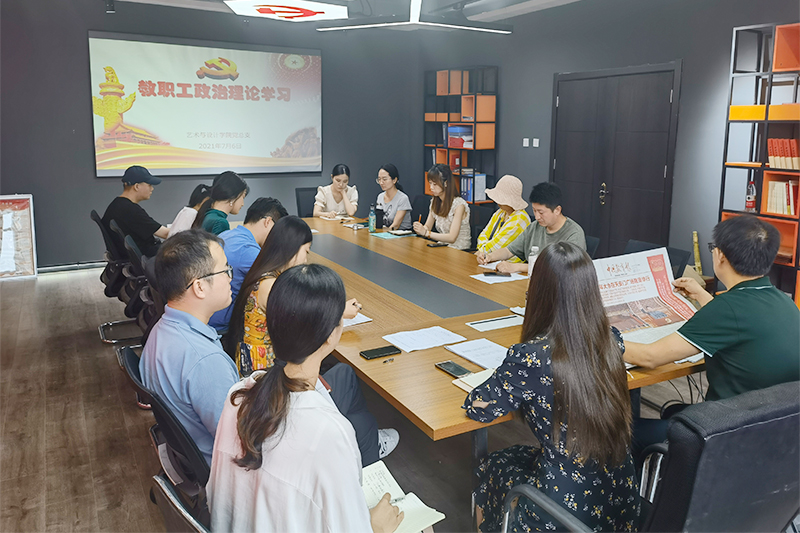 【艺术与设计学院党总支】2021年7月6日下午16:00,艺术与设计学院党总支组织全体教职工在党员之家召开了7月份教职工政治理论学习会暨政治巡察整改座谈会,会议由党总支书记常继红主持。常继红同志首先传达了学校党委《关于2021年7月份教职工政治理论学习安排的通知》文件精神,接着带领大家学习了《习近平总书记在庆祝中国共产党成立一百周年大会上的讲话精神》、《习近平总书记在中共中央政治局第三十一次集体学习时的讲话精神》、《中国共产党普通高等学校基层组织工作条例》及《中国共产党组织工作条例》等政治理论文件精神;接着全体教职工共同观看了视频资料《习近平总书记在“七一勋章”颁授仪式上的讲话精神》。学习结束,全体教职工开展了学习交流活动,进一步提高了全体教职工的政治站位和思想意识。随后,常继红同志主持召开了党总支政治巡察整改座谈会,全体教职工根据学校党委书记张卫平同志和党委第三巡察组对艺术与设计学院党总支政治巡察工作提出的要求和反馈的整改意见,就艺术与设计学院党总支整改方案展开了激烈地讨论,大家各抒己见,提出了各自有建设性合理性的整改措施。全体教职工决心将在学校党委的正确领导下,以此次巡察工作为契机,坚决把问题与不足整改到位,真抓实干,将各项工作推上一个新台阶。