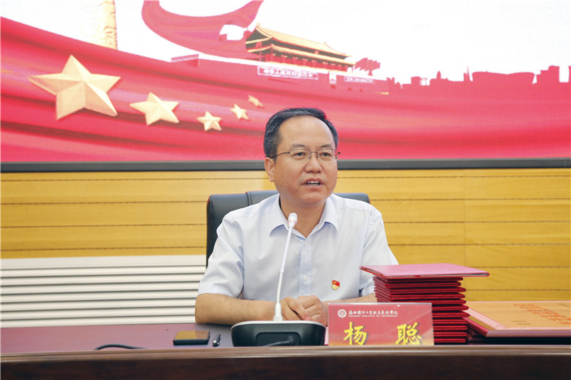 为庆祝中国共产党成立100周年,重温党的光荣历史,总结主要工作,表彰一年来在学校各项工作中涌现出来的先进基层党组织、优秀共产党员、优秀党务工作者,7月9日下午,我校在教四报告厅隆重召开庆祝中国共产党成立100周年暨总结表彰大会。校领导、校党委委员出席会议,离退休老领导、全体教职工党员和学生党员代表共300余人参加会议。党委副书记杨聪主持会议。