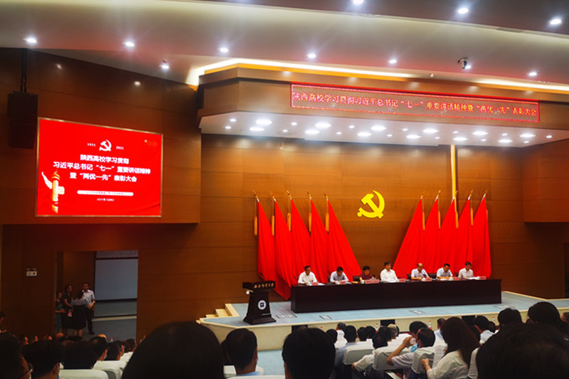 7月8日下午,省委教育工委在西安邮电大学长安校区逸夫报告厅召开陕西高校学习贯彻习近平总书记“七一”重要讲话精神暨“两优一先”表彰大会,我校党委书记张卫平,党政办、组织部相关人员和获奖代表参加了会议,会议由教工委陈乃霞副书记主持。