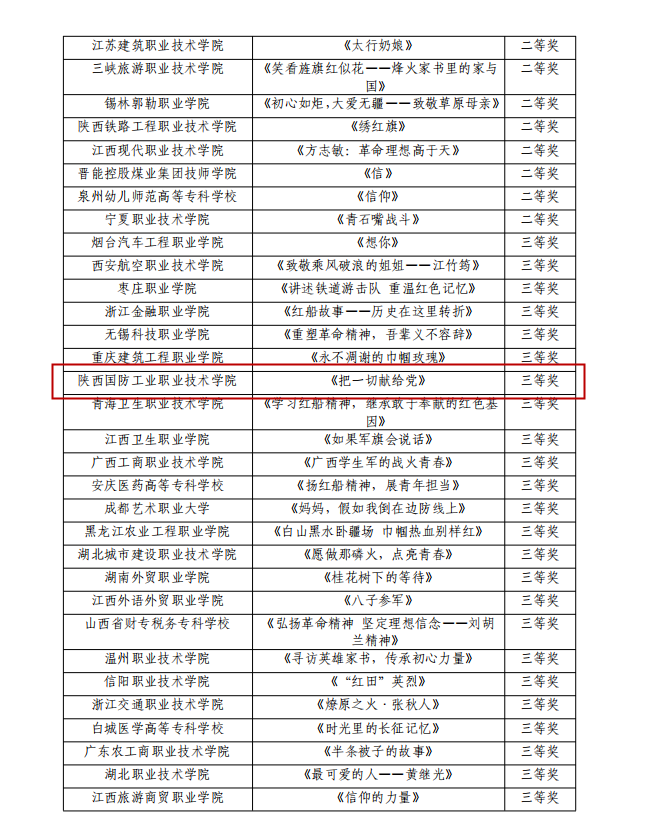 近日,教育部职业院校文化素质教育指导委员会公布第二届红色故事大赛评选结果,我校报送的红色故事视频作品《把一切献给党》荣获大赛三等奖。