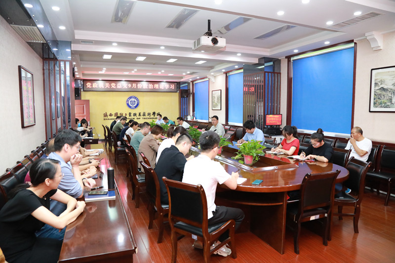 【党政机关党总支】9月10日上午,党政机关党总支在图书楼第一会议室召开教职工政治理论学习会。会议由党总支书记殷兴光主持,党总支全体教职工参加了会议。殷兴光组织教职工集中学习了习近平总书记在庆祝中国共产党成立100周年大会上的讲话、在西藏考察期间的讲话以及在参观“‘不忘初心、牢记使命’中国共产党历史展览”时重要讲话精神。他强调,全体教职工要加强学习习近平总书记系列重要讲话,深入理解讲话中提出的一系列新思想新观点新论断,重点把握其中的精髓要义和丰富内涵,不断从中汲取奋进前行的精神能量和实践力量。党总支组织委员冯波、宣传委员刘振兴分别带领大家对“时代楷模”邱军、孙丽美先进事迹和教育部公开曝光的第七批8起违反教师职业行为十项准则典型案例进行学习。本次会议进一步提高了全体教职工对习近平总书记系列重要讲话精神实质的领会,强化了教师的责任心和使命感,在教师节来临之际,全体教职工表示要坚定理想信念、发扬优良传统、赓续红色血脉,扎实做好本职工作,为学校各项工作有序高效开展奠定坚实基础。