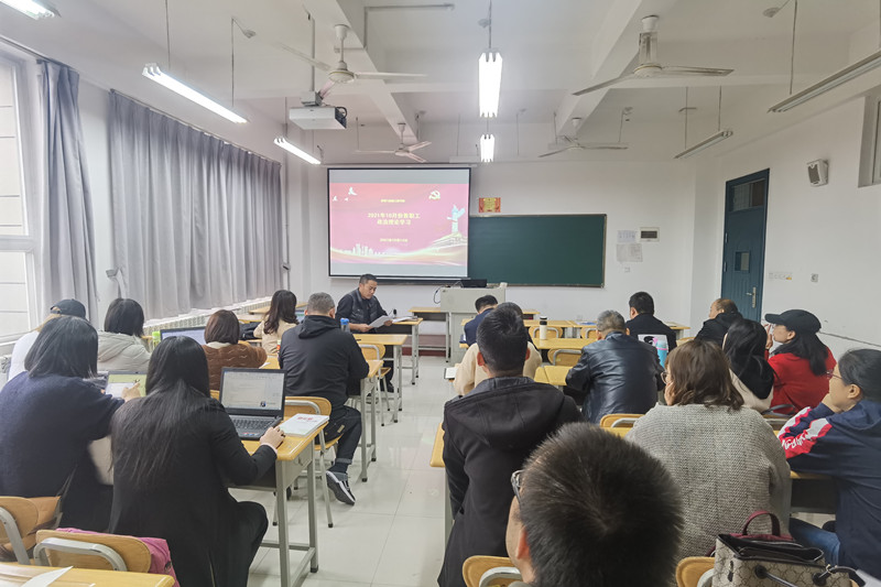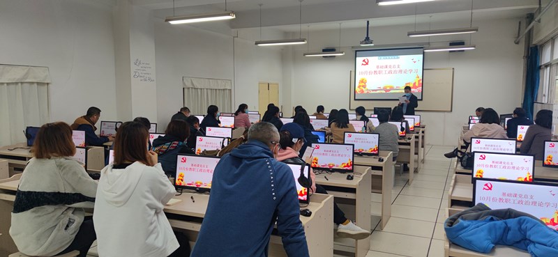 【基础课党总支】10月19日下午,基础课党总支在北区5-607开展2021年10月教职工政治理论学习,基础课部和体育部全体教师参加,会议由党总支书记权华主持。