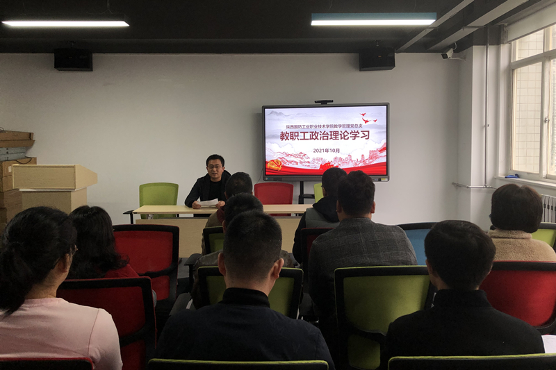 【人工智能学院】根据陕国职党宣〔2021〕17号《关于2021年10月份教职工政治理论学习安排的通知》。人工智能学院于10月26日下午17:00在8-208开展教职工政治理论学习,会议由人工智能学院党总支书记张双琦老师主持,全体教职工出席了本次会议。
