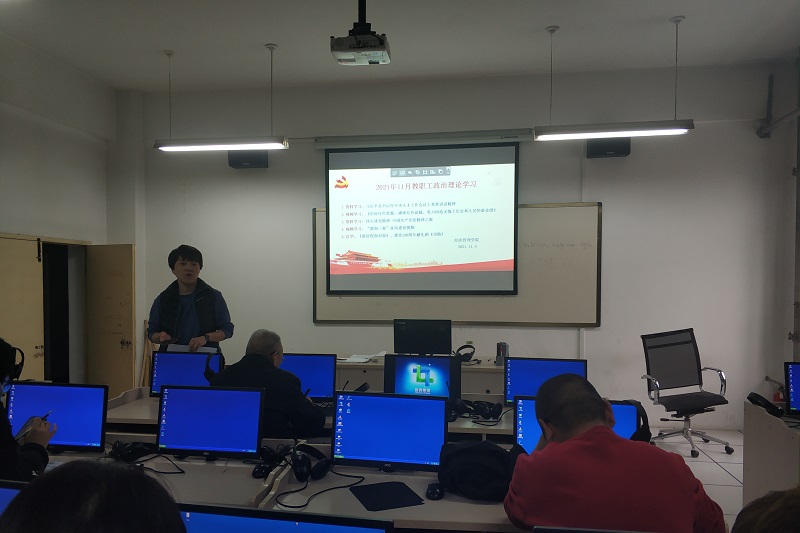 【人工智能学院党总支】根据陕国职党宣〔2021〕18号《关于2021年11月份教职工政治理论学习安排的通知》。人工智能学院于11月11日下午17:00在8-208开展教职工政治理论学习,会议由人工智能学院党总支书记张双琦老师主持,全体教职工出席了本次会议。