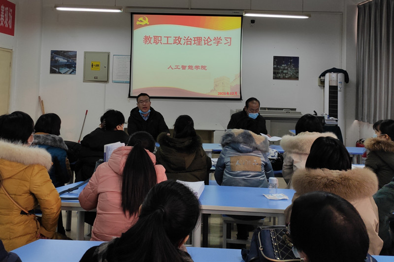 【人工智能学院党总支】根据陕国职党宣〔2021〕21号《关于2021年12月份教职工政治理论学习安排的通知》。人工智能学院于12月07日下午17:00在8-208开展教职工政治理论学习,会议由人工智能学院党总支书记张双琦老师主持,院长姜鑫及全体教职工出席了本次会议。首先,张双琦和姜鑫分别带领大家学习了《党的十九届六中全会公报》和《中共中央关于党的百年奋斗重大成就和历史经验的决议》相关内容;其次崔屹嵘带领大家学习了《习近平关于全面依法治国论述摘编》相关内容;最后大家《宪法》和《民法典》相关视频以及其它视频内容。通过学习《党的十九届六中全会公报》等内容,全体教师一致认为要全面贯彻习近平新时代中国特色社会主义思想,大力弘扬伟大建党精神,勿忘昨天的苦难辉煌,无愧今天的使命担当,不负明天的伟大梦想,以史为鉴、开创未来,埋头苦干、勇毅前行,为实现国防职教梦而不懈奋斗。