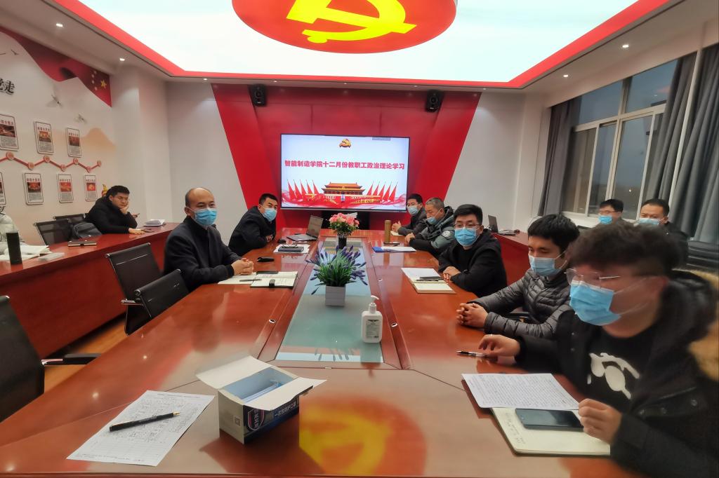 【智能制造学院】按照陕国职党宣〔2021〕21号文件《关于2021年12月教职工政治理论学习安排的通知》要求,12月17日下午,智能制造学院党总支组织全体教职工于党员之家进行政治理论学习会议。会议由智能制造学院党总支书记白福民主持。会上,白福民带领大家集中展开学习了党的十九届六中全会公报,《中共中央关于党的百年奋斗重大成就和历史经验的决议》内容,以及《习近平关于全面依法治国论述摘编》。全体教职工集体观看了时政微视频《以伟大斗争赢得伟大胜利》,“在重要历史关头召开的一次具有重大历史意义的会议”——中共中央举行新闻发布会解读党的十九届六中全会精神。最后,白福民总结讲话,他指出,党的十九届六中全会是在重大历史关头召开的一次具有重大历史意义的会议,我们要认真学习全会精神,勿忘昨天的苦难辉煌,无愧今天的使命担当,不负明天的伟大梦想,以史为鉴、开创未来。