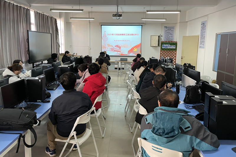 【基础课党总支】根据陕国职党宣〔2021〕21号文件《关于2021年12月教职工政治理论学习安排的通知》要求,基础课党总支于2021年12月2日下午在北校区语音室开展12月教职工政治理论学习。全体教职工共同学习了《中国共产党第十九届中央委员会第六次全体会议公报》。中国共产党第十九届中央委员会第六次全体会议于2021年11月8日至11日在北京举行,党中央号召,全党全军全国各族人民要更加紧密地团结在以习近平同志为核心的党中央周围,全面贯彻习近平新时代中国特色社会主义思想,大力弘扬伟大建党精神,勿忘昨天的苦难辉煌,无愧今天的使命担当,不负明天的伟大梦想,以史为鉴、开创未来,埋头苦干、勇毅前行,为实现第二个百年奋斗目标、实现中华民族伟大复兴的中国梦而不懈奋斗。随后学习了《中共中央关于党的百年奋斗重大成就和历史经验的决议》《习近平关于全面依法治国论述摘编》《宪法》《民法典》,共同观看了视频《党的辉煌历史》,重温了党的辉煌历史,缅怀了革命先烈的丰功伟绩,接受了一次革命传统教育和爱国主义教育,激发了全体教职工的民族自信心和爱国情怀。最后,传达了学校《关于进一步规范领导干部办理婚丧嫁娶等事宜的规定》的通知。伟大成就坚定必胜信心,伟大梦想凝聚奋进力量。全体参会教职工深刻领会了此次政治理论学习的相关精神,倍感振奋、豪情满怀,表示在今后的教育教学工作中增强“功成不必在我,功成必定有我”的历史担当,凝心聚力、锐意进取,为学校高质量的发展而不懈奋斗。