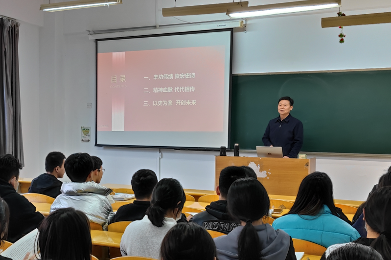 党委书记张卫平,分别以“奋斗百年路 启航新征程”“谱写乡村全面振兴新篇章”为题为电子信息学院学生讲授了形势与政策课,他从庆祝中国共产党成立100周年大会引入,围绕“伟大建党精神的深刻内涵和时代价值”,从“丰功伟绩 恢宏史诗”“精神血脉 代代相传”“以史为鉴,开创未来”进行了详细的讲解,通过阐述中国共产党的百年奋斗史,让学生充分认识到了,只有中国共产党,才能让中国实现站起来、富起来、强起来,以及伟大建党精神,在中国共产党成长发展中的重要作用,激励学生坚定不移听党话、跟党走,把个人理想融入时代主题、汇入复兴伟业,勇做担当民族复兴大任的时代新人。