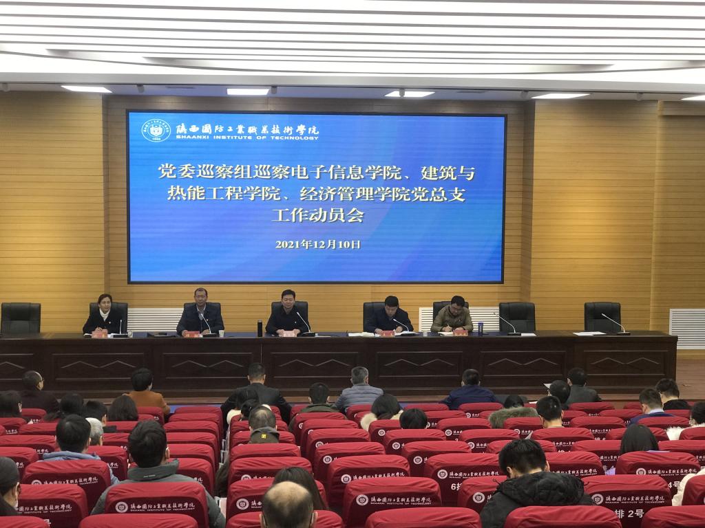 为加强党的建设、全面从严治党以及党风廉政建设的全面政治体检和有力促进,开展好校内巡察工作,12月10日下午,我校在北校区教四报告厅召开2021年下半年校内巡察工作动员会,校党委书记张卫平、校党委副书记、纪委书记王玉出席会议,校内巡察组全体成员、被巡察单位电子信息学院、建筑与热能工程学院、经济管理学院全体党员参加会议。会议由校党委副书记、纪委书记王玉主持。