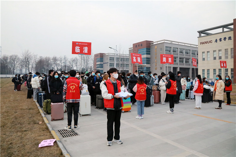 根据西安市疫情防控指挥部的最新要求以及陕西省教育厅对于我校寒假工作安排的批复,我校12000余名学子将从1月16日起分批错峰离校返家乡,40辆由学校调集的爱心大巴车已安全转运第一批近5000名学生,点对点转运至“两站一场”,以及西安、咸阳城区及各区县等共计20余个站点,暖心护航学生平安返乡。据悉,学校已联系交通部门安排了一辆火车专列,两辆高铁专列,大巴车转运达230班次,免费护航学子返乡,对于新疆籍学生,学校还特意包机安排了其返乡之旅,保障所有学子旅途安全。此外,校领导深入一线、靠前指挥,各部门及二级学院调集精干力量,与学工干部、辅导员一同参与学生返乡的转运工作,并在每辆车上安排1名教师亲自护送学生回家。各乘车地点,到处是老师们忙碌的身影,帮助学生拿放行李、安排座位、点名确认等,每项工作都细致入微、井然有序。