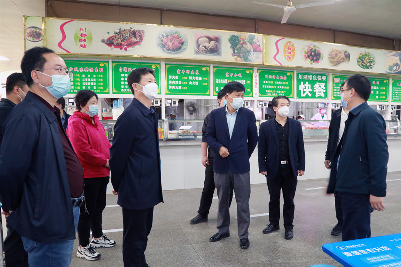校长刘敏涵在食堂详细查阅消杀记录、食品安全等情况,与后勤处和食堂负责人行交谈,详细了解了各类物资的储备供应、食堂餐品供应情况,强调要确保师生的日常生活物资供应丰富及时,严格管控食品安全和食品质量,严格做好安保、保洁、食堂等工作人员的健康监测,筑牢校园疫情防控安全防线。