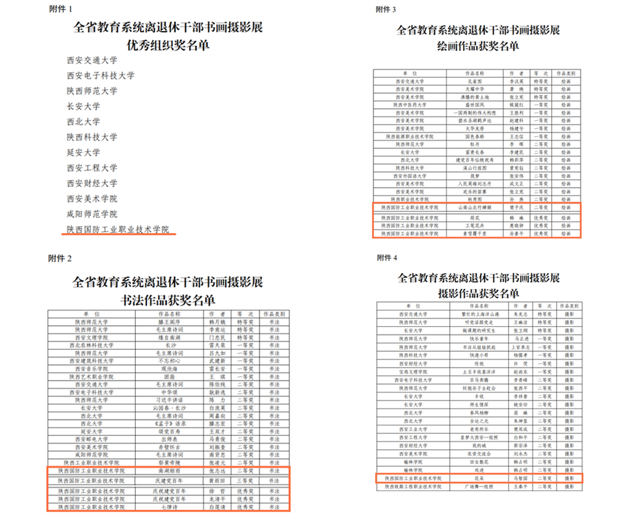 在《“百年光辉映初心”全省教育系统离退休干部庆祝中国共产党成立100周年书画摄影展》活动中,我校报送书法、绘画、摄影作品共计60余件。张志远书法作品《南湖烟雨》获得二等奖,黄雨田书法作品《庆建党百年》获得三等奖,徐哲书法作品《庆建党百年》、龙清平书法作品《庆建党百年》、白莲清书法作品《七律诗》获得优秀奖;樊予庆绘画作品《山南山北竹婵娟》获得二等奖,韩林绘画作品《荷花》、惠晓钟绘画作品《工笔花卉》、孙素萍绘画作品《素雪覆千里》获得优秀奖;马智国摄影作品《花朵》获得二等奖,我校荣获优秀组织奖。