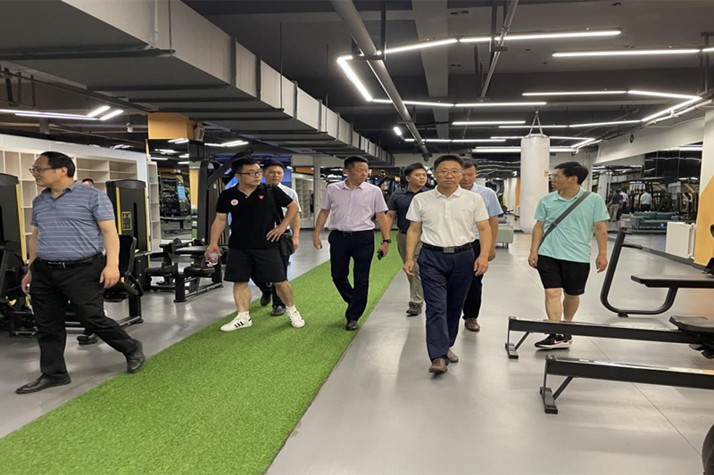 首先,孟繁增一行调研了西安外国语大学健身房,参观了健身房的场地规划及各功能区设置情况,详细了解健身房的运营模式,健身教学项目开展及学生的参与程度等关心的问题。