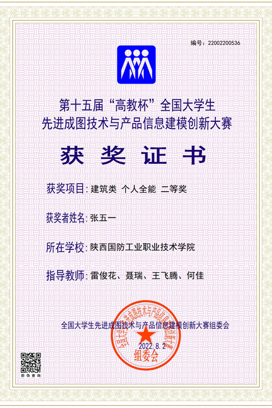 8月25日,我校收到第十五届“高教杯”全国大学生先进成图技术与产品信息建模创新大赛的获奖证书,该大赛于7月30日在江苏大学成功举办。本届大赛经各省竞赛推选,共有675所本、专科院校的1041支队伍10349名选手参加,创历史新高。经过激励角逐,我校2020级工程造价专业学生张五一获得建筑类个人全能二等奖。