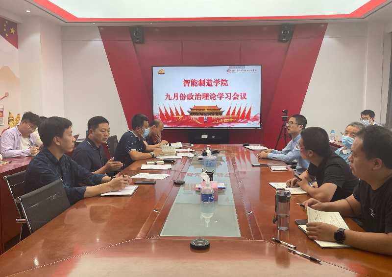 【智能制造学院党总支】9月29日,智能制造学院在10-305组织召开9月份政治理论学习会议,二级学院党政领导以及全体教职工参加会议,会议由学院党总副书记兼副院长沈博主持。