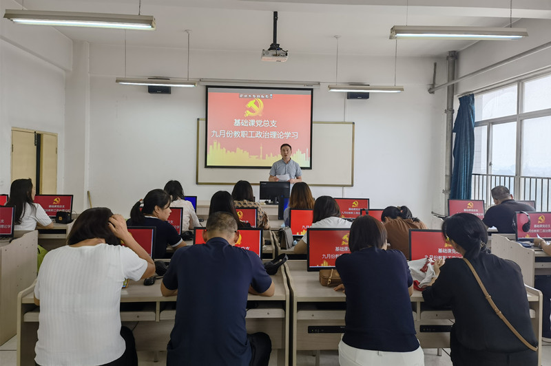 【基础课党总支】根据陕国职党宣[2022]22号文件《关于2022年9月教职工政治理论学习暨组织活动安排的通知》要求,为进一步加强基础教职工政治理论学习,切实提高教职工政治素质和理论水平,基础课党总支于2022年9月14日在北区5-607语音室开展9月教职工政治理论学习,会议由党总支书记权华主持。