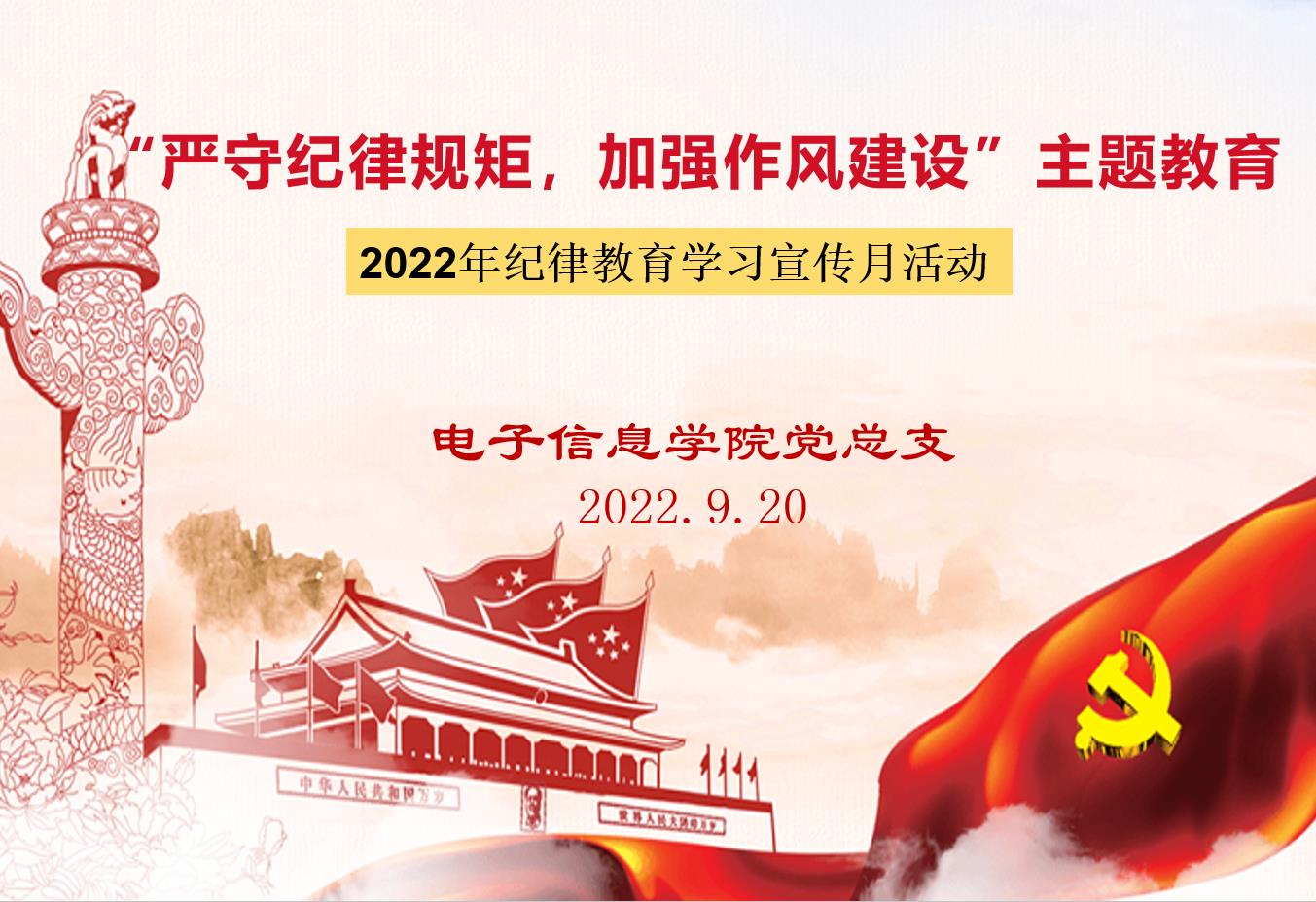 【电子信息学院党总支】按照陕国职党纪发〔2022〕5号文件《关于在全校开展纪律教育学习宣传月活动的通知》要求,9月20日下午,电子信息学院党总支组织全体党员进行纪律教育学习,会议由电子信息党总支委员王古森主持,全体党员参加会议。