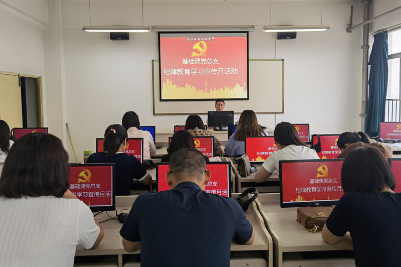 ——组织集体学习。根据纪律教育学习宣传月活动内容,基础课党总支组织全体党员集体学习了习近平总书记关于全面从严治党、党风廉政建设、纪律建设、廉洁文化建设的重要论述,《中国共产党纪律处分条例》《党委(党组)落实全面从严治党主体责任规定》《中共中央办公厅关于进一步激励广大干部新时代新担当新作为的意见》以及中央、省委关于加强作风建设的系列文件等内容,并观看了纪律教育公开课:《中国共产党纪律处分条例》解读、习近平总书记论全面从严治党、习近平总书记关于加强纪律建设的重要论述和《关于加强新时代廉洁文化建设的意见》解读等内容。最后有余腾飞领学《十九大以来陕西省高校违纪违法典型案例警示录》部分内容。