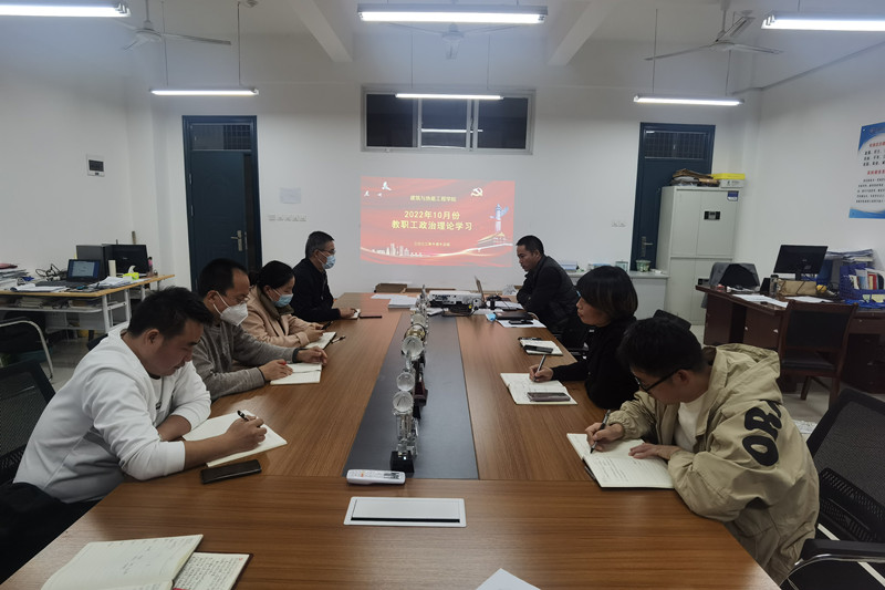 【建筑工程学院党总支】按照陕国职党宣〔2022〕24号文件《关于2022年10月教职工政治理论学习暨组织活动安排的通知》要求,建筑工程学院于2022年10月13日下午在教4-240召开了本月教职工政治理论学习会议。由于疫情原因,会议采用线上与线下相结合的方式开展。党总支书记强卫印主持会议,全体教职工参加会议。
