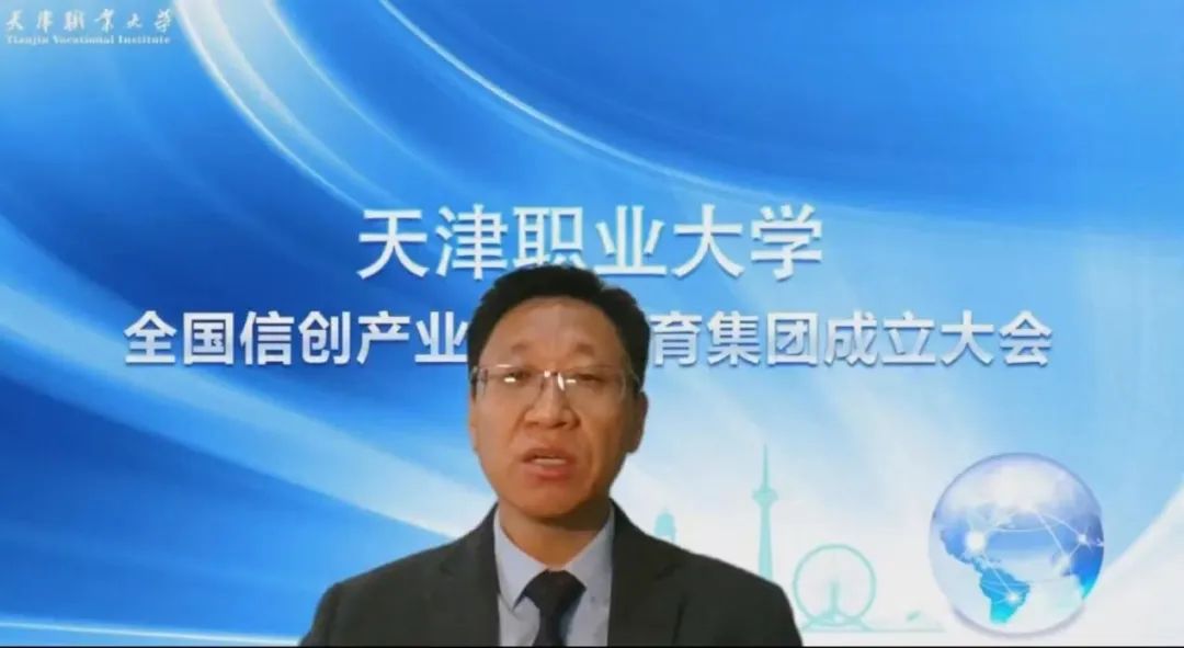 在成立大会上,我校孟繁增副校长受邀代表参加全国信创产业职业教育集团建设的高职院校进行致辞,向集团成立表示热烈祝贺,指出全国信创产业职业教育集团的成立,为职业院校、信创企业构建了一个“命运共同体”,搭建了一个平等互信、交流互鉴的合作平台。信创人才需求不断增大,高校是信创人才培养的主阵地,希望政企行校多方共同建设好全国信创产业职业教育集团,探索和实践信创领域协同育人的新机制,培养大批的复合型的信创技术技能人才,为国家信创产业高质量发展贡献力量。并提出3点倡议:殚智竭力,充分认识成立职教集团的重大意义,凝心聚力;提升职业教育服务信创产业发展能力;齐心协力,推进全国信创产业职教集团健康发展。