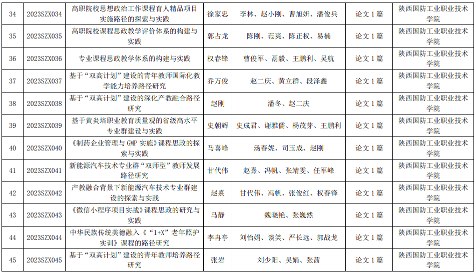 帮扶团队教师联合山阳职中鬲毅和曹俊军副主任,针对目前中职院校专业课思政教育效果存在评价方式、评价效果等有效衡量方面的问题,开展课题撰写,并成功被陕西省职业技术教学学会立项,题目为《专业课程思政教学体系的构建与实践》。