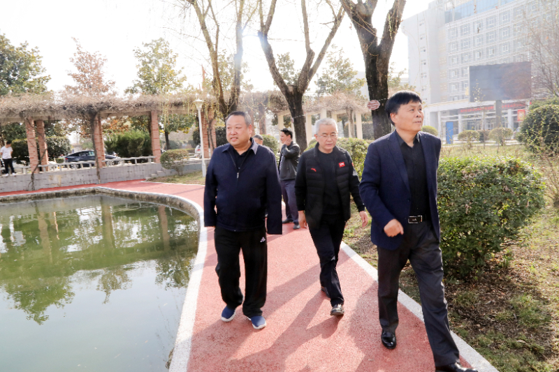 在刘敏涵和相关部门负责同志的陪同下,专家组对我校励剑广场、劳动实践基地、餐饮中心、学生宿舍、智能制造产业学院等地进行了实地考察。