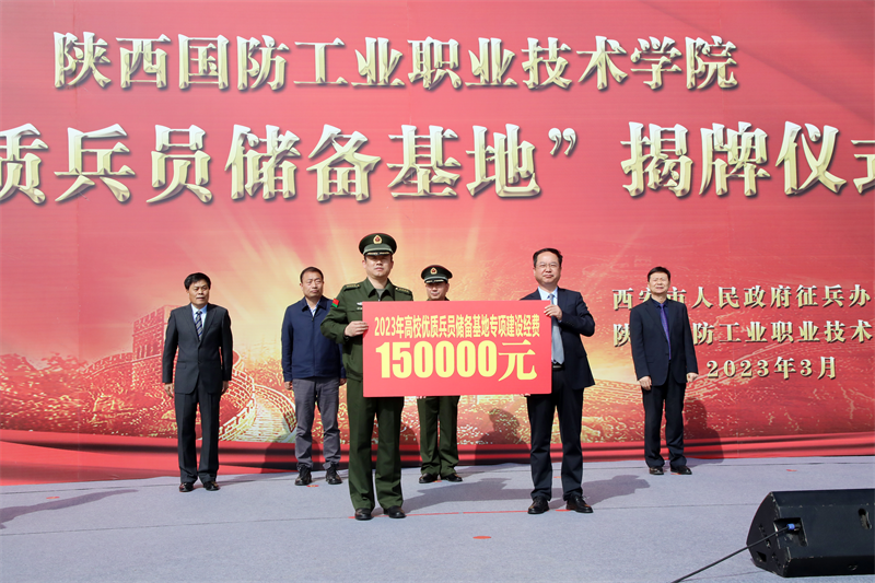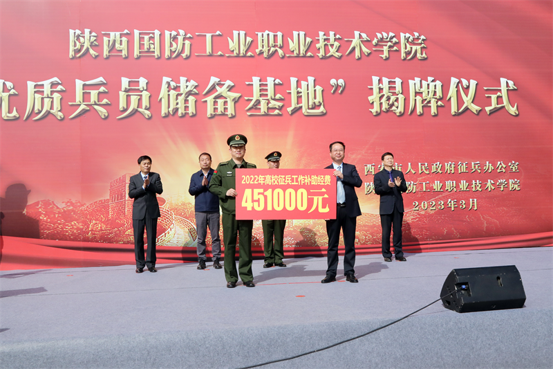 西安警备区李树龙副司令员向学校发放了2022年高校“征兵工作”补助经费,向学校拨付了2023年高校“优质兵员储备基地”专项建设经费。