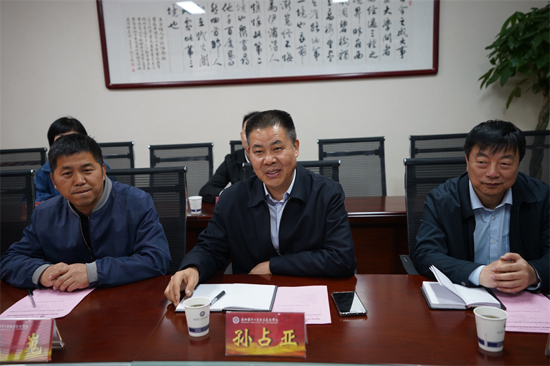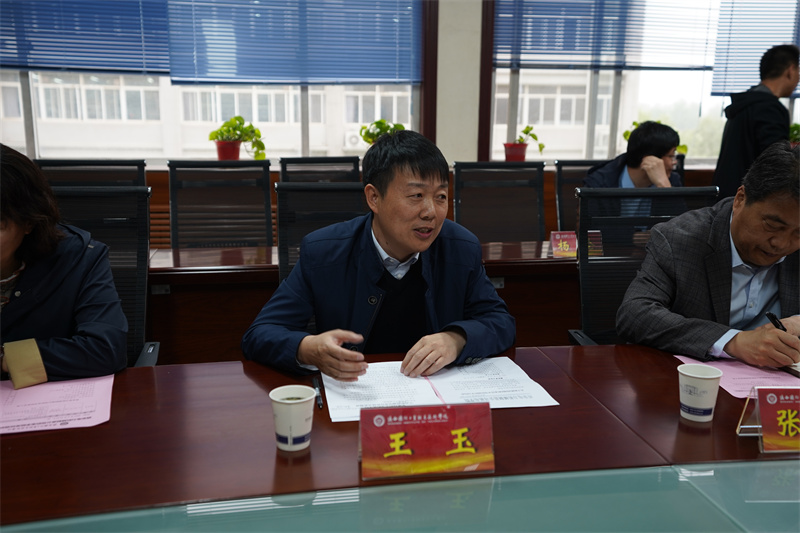 王玉首先代表学校对西安电力机械制造公司机电学院一行来访我校表示欢迎,简要介绍了学校历史、办学特色等。孙占亚对我校的热情接待表示感谢,介绍了西安电力机械制造公司机电学院的基本情况,充分肯定了我校办学成效。