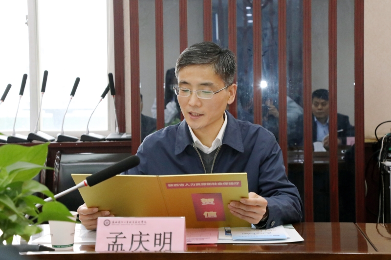 陕西省人力资源和社会保障厅职业技能鉴定指导中心主任孟庆明宣读贺信