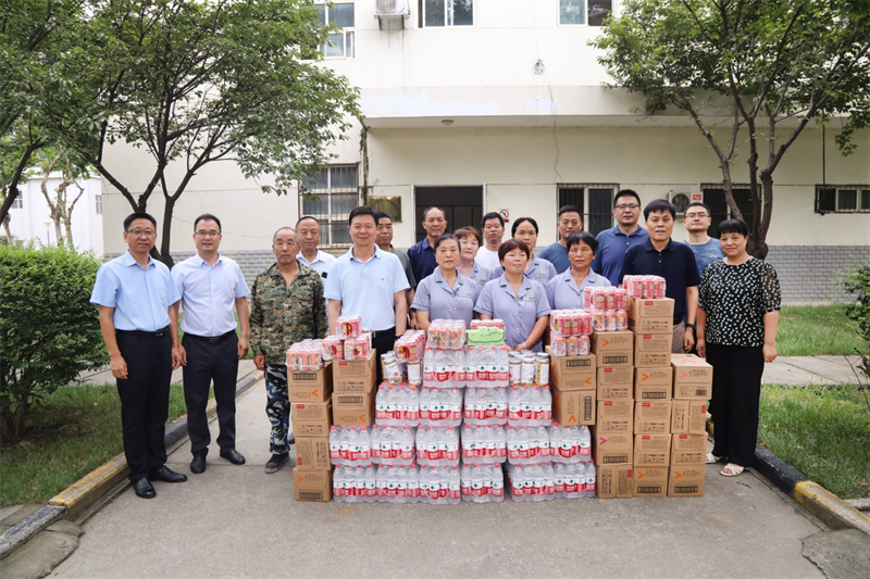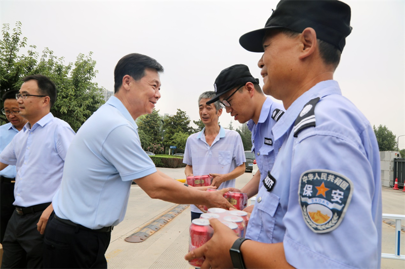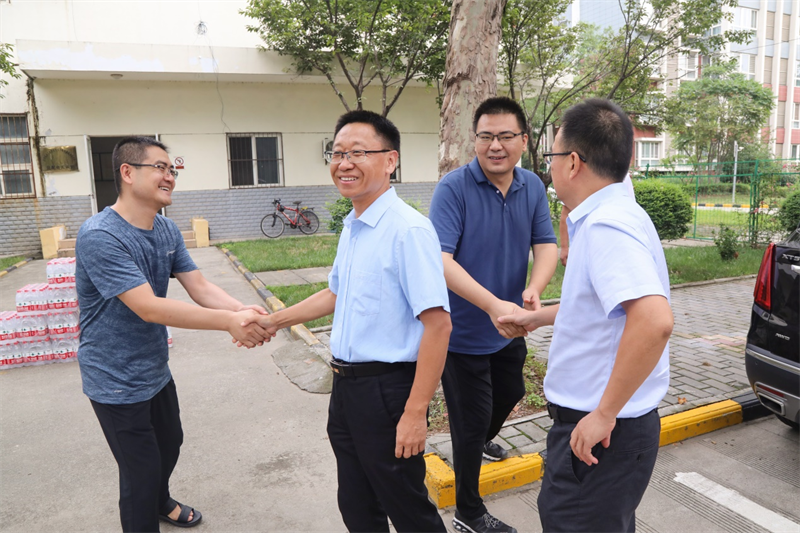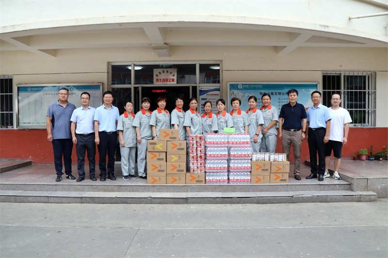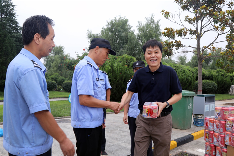 8月9日上午,党委书记张卫平、校长刘敏涵、副校长张永军、副校长孟繁增带领党政办、宣传部、校工会等一行人,慰问暑期坚守在学校工作一线的人员,为他们送去学校的关怀和夏日的清凉。