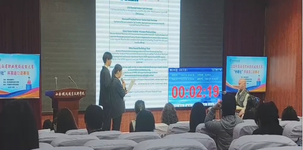 在“情景交流”环节,师生同台,配合默契,交替回答了外籍专家的10项提问,针对医疗场所“医护人员招聘”等系列问题,对答如流,成功晋级决赛。